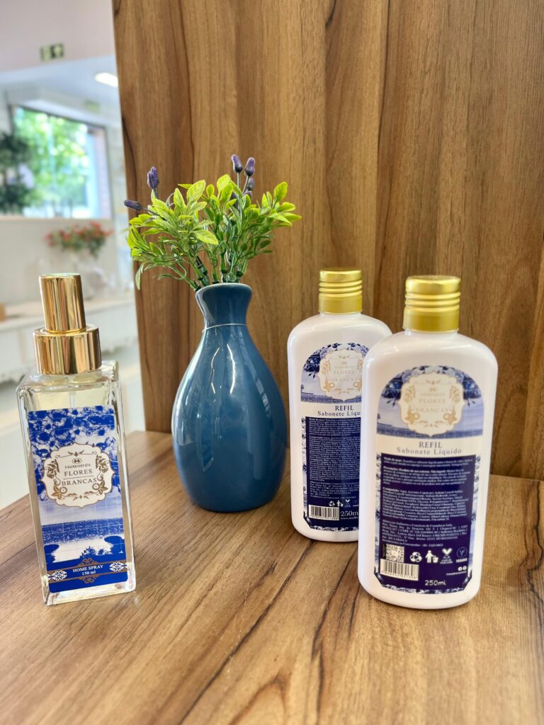 Linha de aroma Flores Brancas. Reflete a paz e harmonia. Das pombalinas arquiteturas portuguesas, mesclam-se as simetrias perfeitas para aromas sublimes. Com óleo essencial de laranja: Conhecido por suas propriedades energizantes e revitalizantes. Promove um sentimento de alegria e vitalidade, além de ajudar a melhorar o humor e reduzir o estresse.