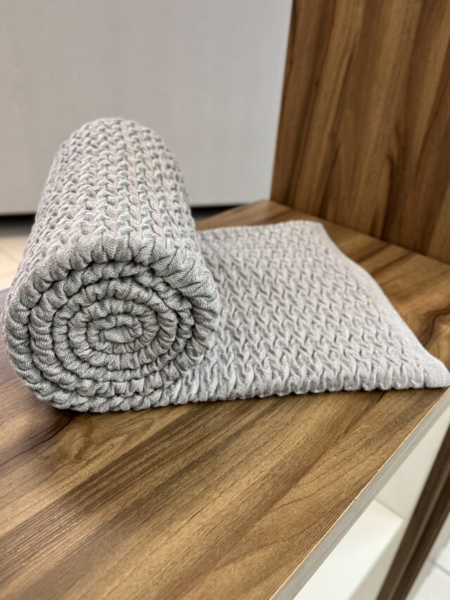 Manta leve em tricot, 100% poliéster, com ponto trabalhado, perfeita para usar como peseira, para colocar em sofás, poltronas e cadeiras. Um item indispensável na decoração de ambientes.