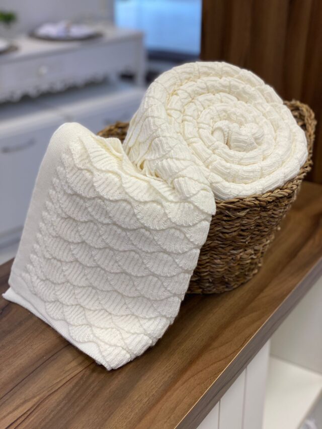 Manta 100% algodão em tricot, super elegante, moderna, decorativa e aconchegante, com a incrível maciez do tricot em puro algodão. Confere sofisticação na medida certa, além de agregar um charme a mais na decoração de ambientes, com seus detalhes de escamas de peixe. Super funcional, é perfeita para aquecer e aconchegar em dias mais frescos.