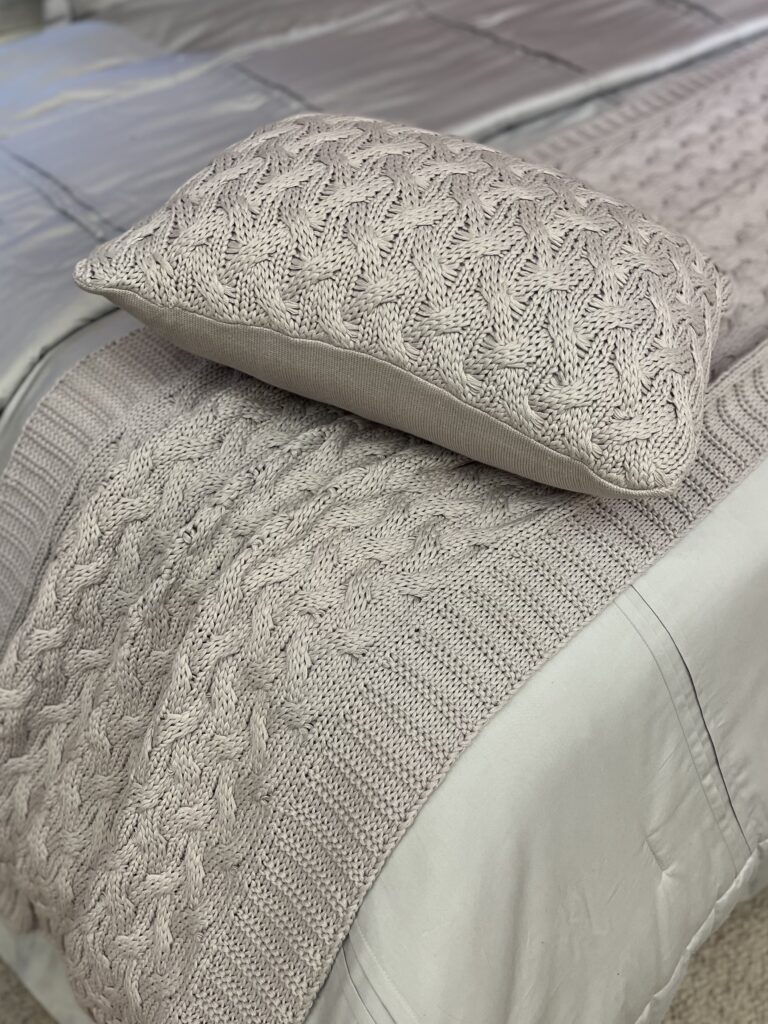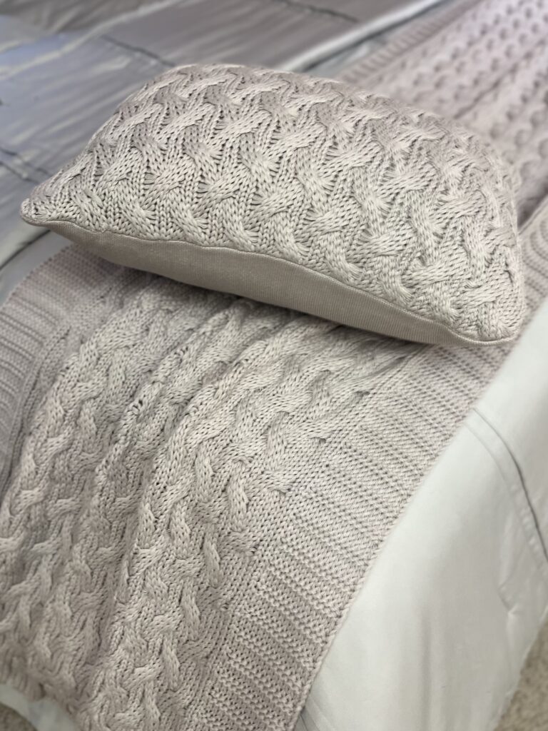 Peseira em tricot, 100% algodão. Com textura clássica em tricot e acabamento emoldurado. Os detalhes dos fios trançados conferem um visual sofisticado, que enriquece o ambiente.