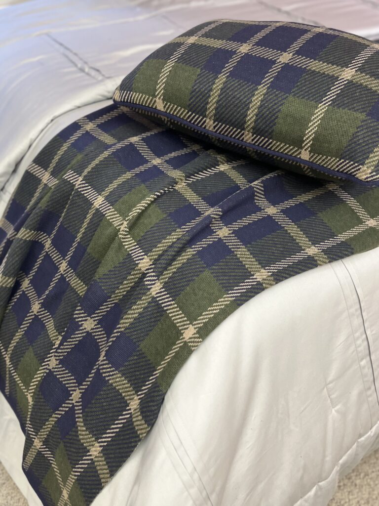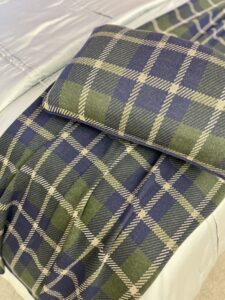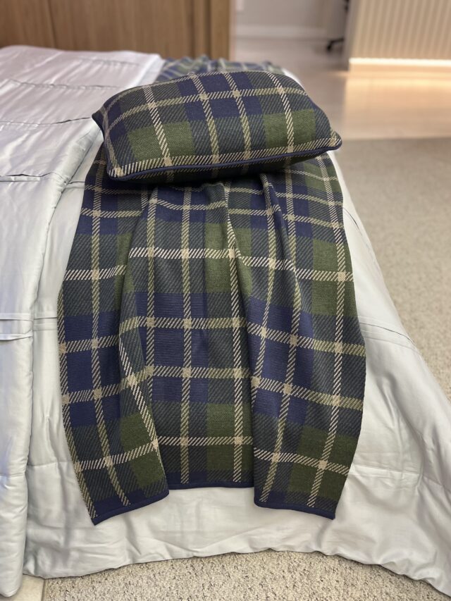 Peseira em tricot, 50% algodão e 50% acrílico. Com padrão xadrez clássico e acabamento delicado. A combinação de cores e a textura macia conferem um visual elegante, que valoriza a decoração do ambiente.