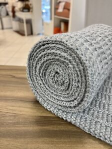 Peseira em tricot, 100% lã acrílica. Essa peça adiciona charme e aconchego a qualquer ambiente, combinando um toque macio com um design contemporâneo, criando uma atmosfera de serenidade e beleza.