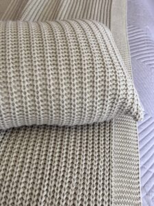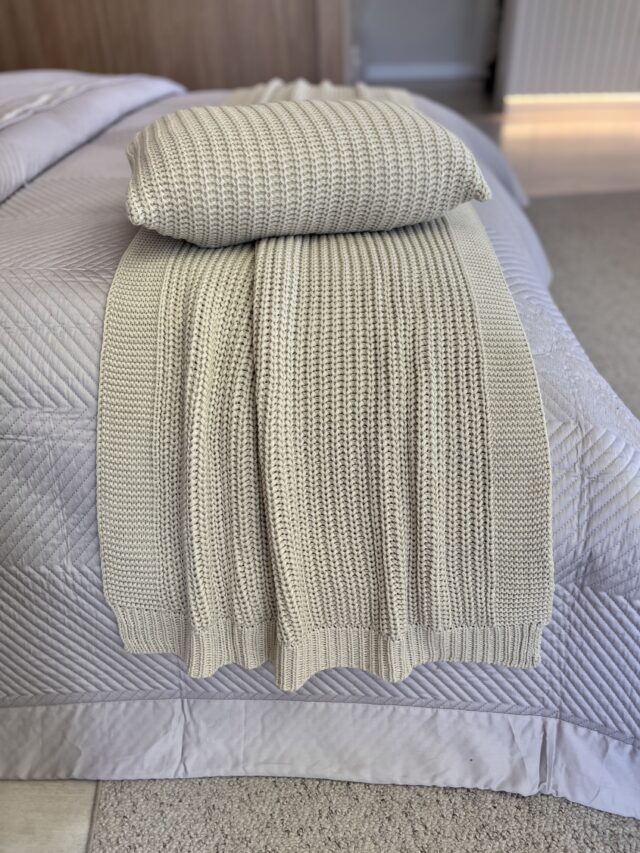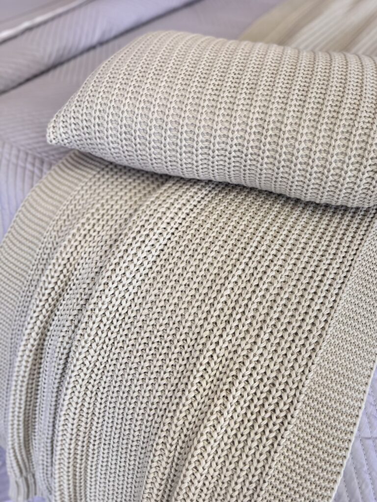 Peseira em tricot, 100% acrílico. Apresenta um trançado elegante que agrega textura e sofisticação ao ambiente A peça é macia ao toque e ideal para ser usada aos pés da cama, criando uma sensação de aconchego que transforma o ambiente.