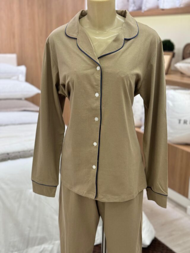 Pijama feminino em algodão premium, com toque muito macio, quentinho e confortável, com blusa de manga longa, abotoado, com gola e calça comprida.