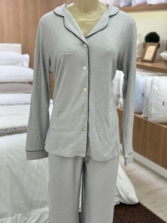 Pijama feminino em cashmere, com toque muito macio, super quentinho e confortável, com blusa de manga longa, abotoado, com gola e calça comprida.