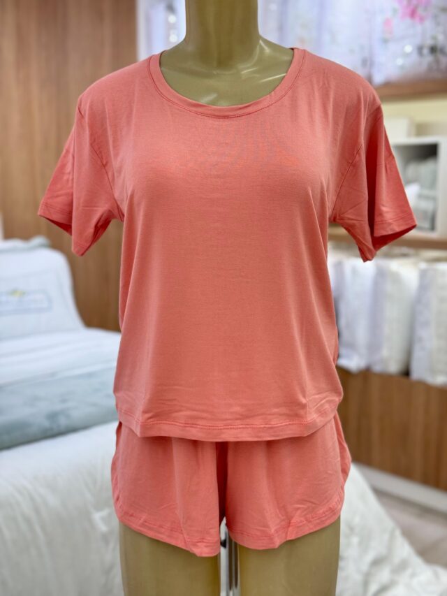 Pijama feminino em viscose, com toque muito suave, fresquinho e aveludado. Liso, com blusa de manga curta e short com elástico na cintura, garantindo um ajuste perfeito e liberdade de movimento.