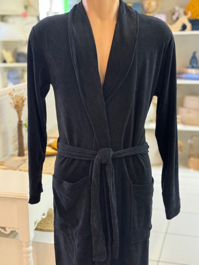 Robe todo em plush, com bolsos frontais, mangas longas e comprimento longo.