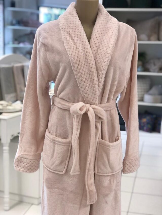 Roupão todo em microfibra, muito quentinho e aconchegante, bolsos laterais, cinto e detalhes lindos nos punhos e na gola.