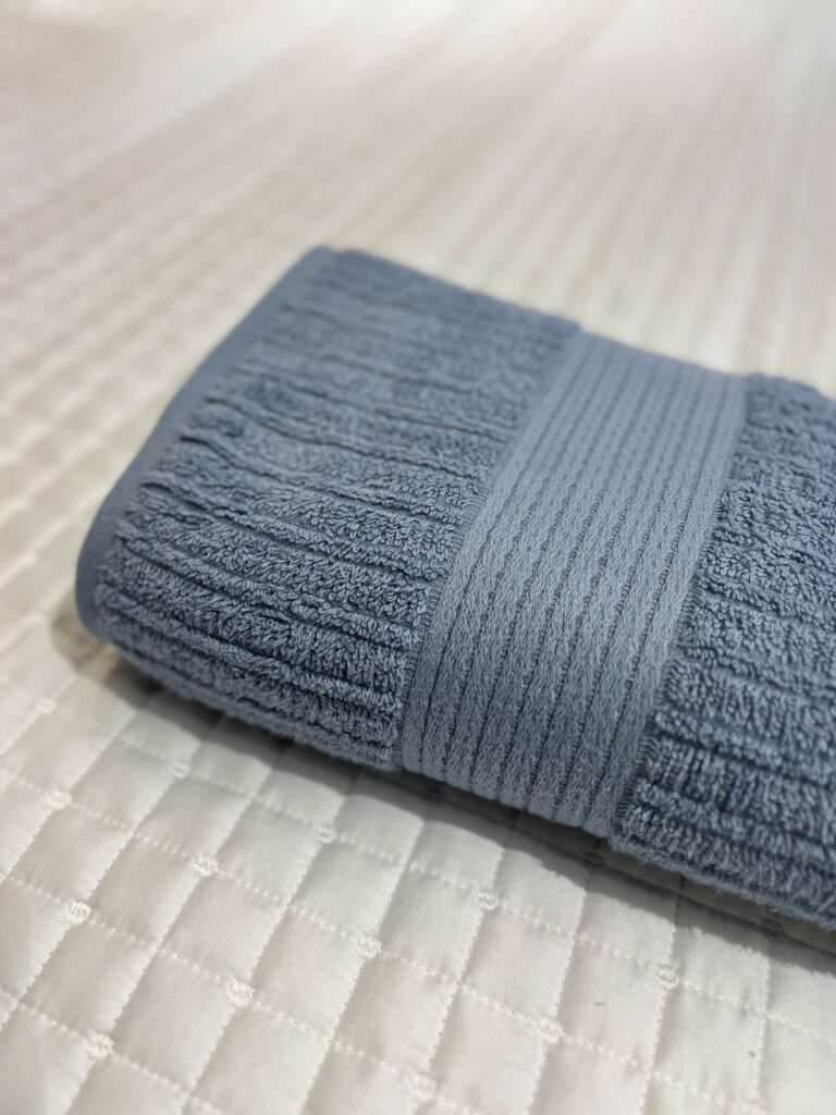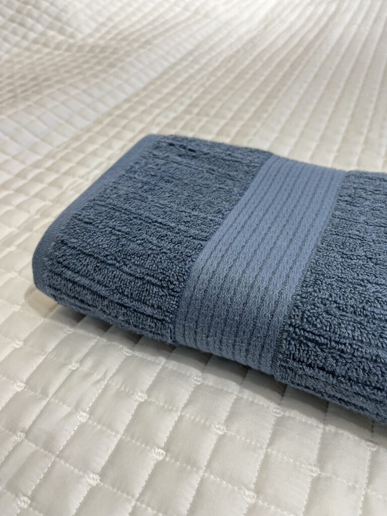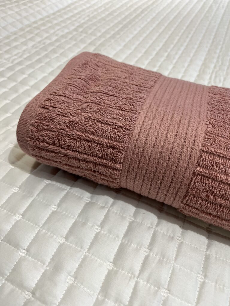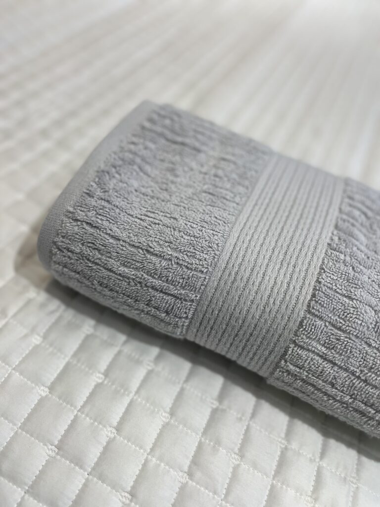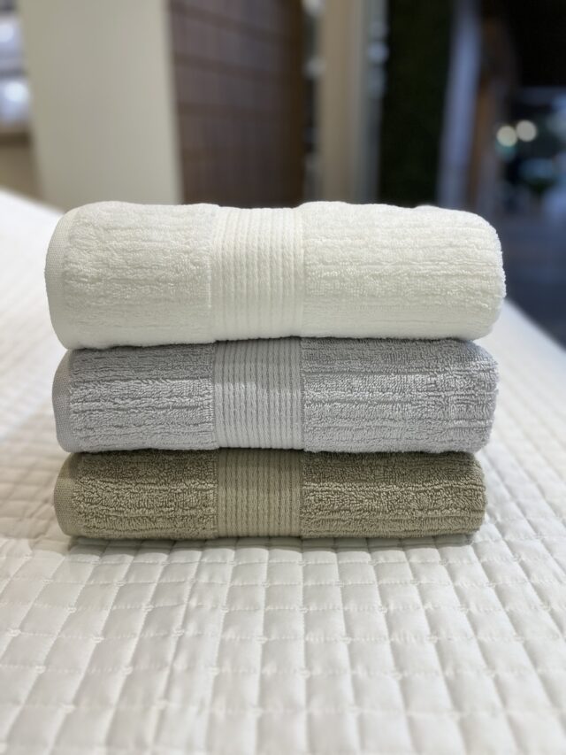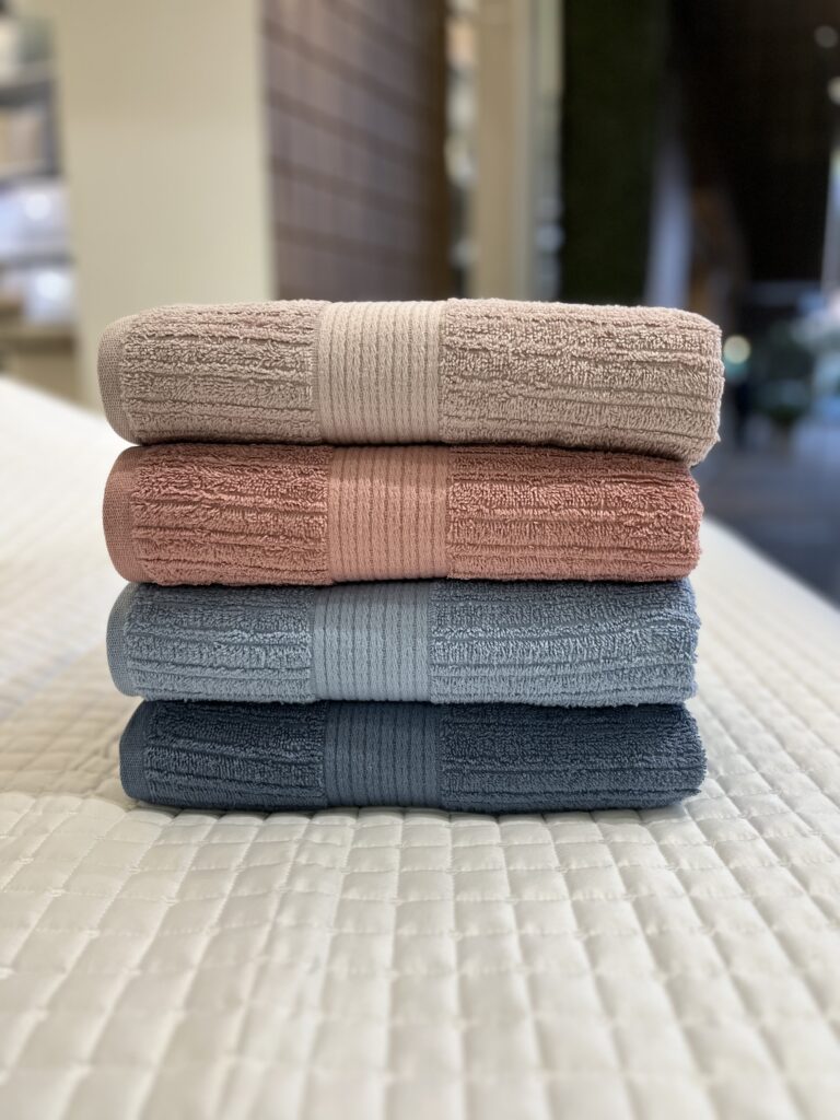 Toalha canelada, 100% Algodão, 480 g/m², com fio penteado. Toque super aconchegante, secagem rápida e ótima absorção.