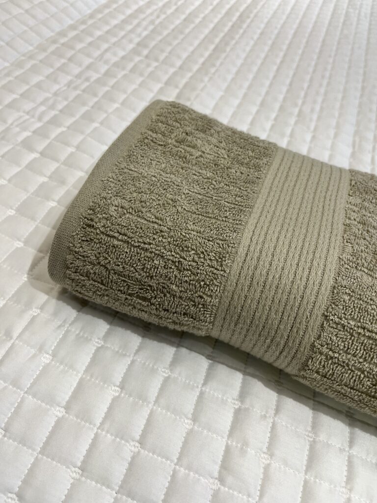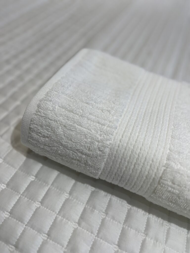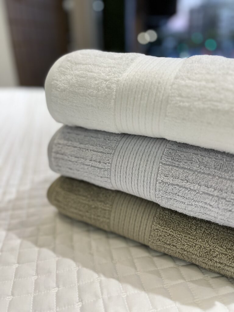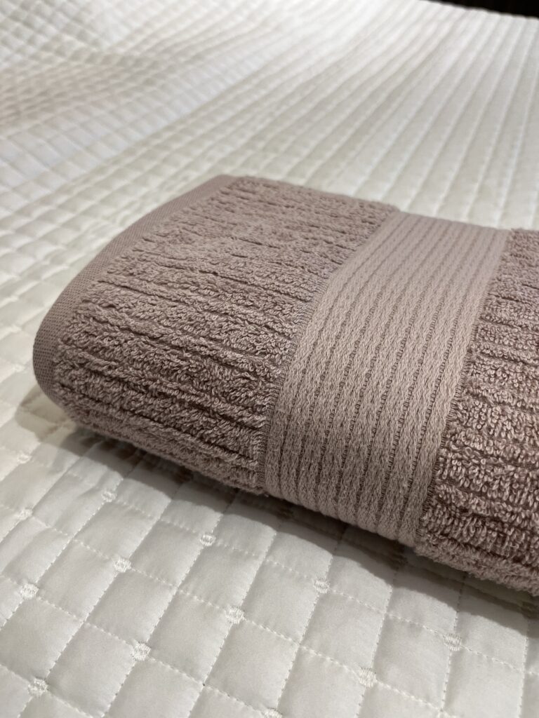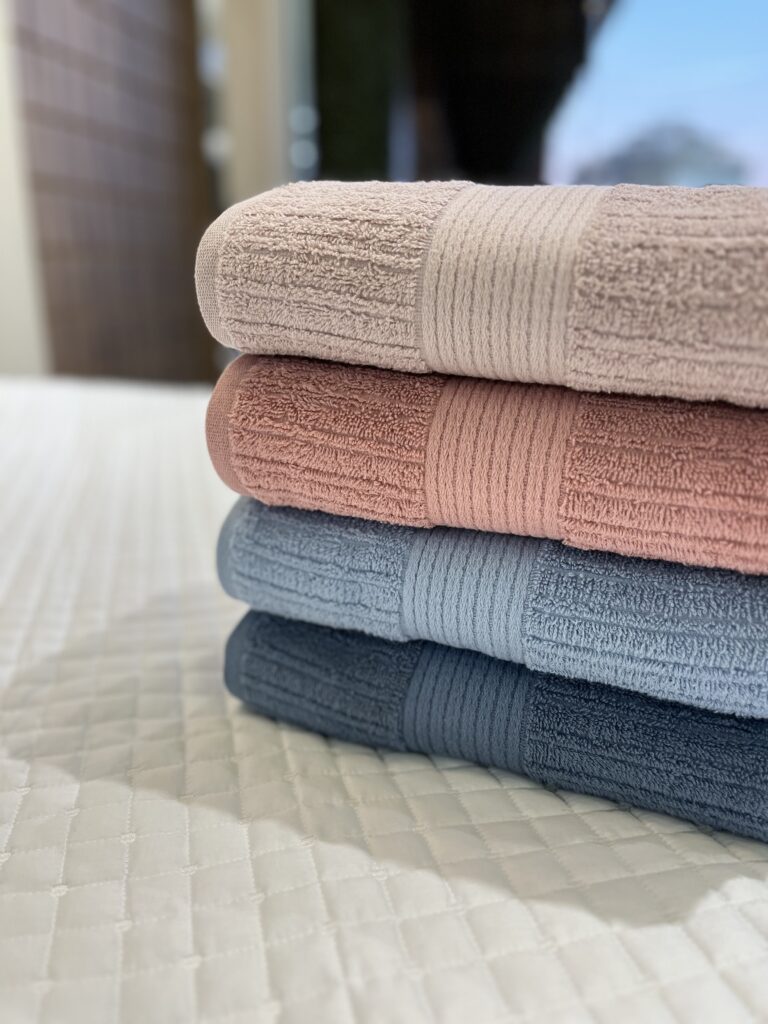 Toalha canelada, 100% Algodão, 480 g/m², com fio penteado. Toque super aconchegante, secagem rápida e ótima absorção.