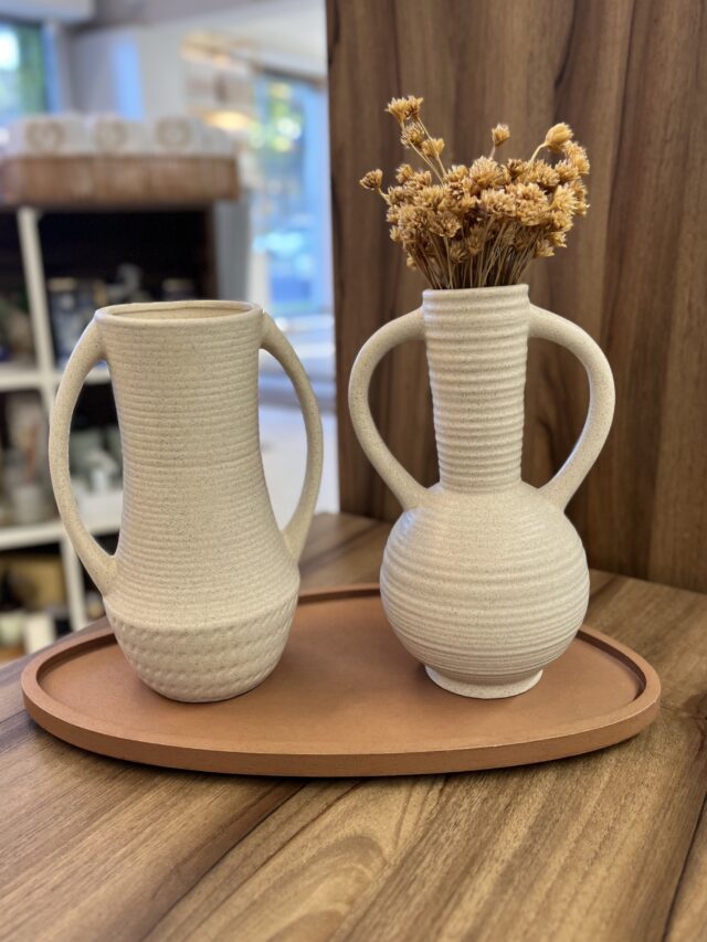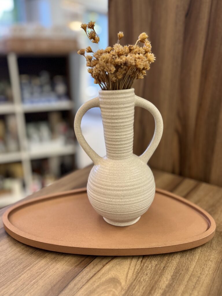 Vaso em cerâmica com alça.